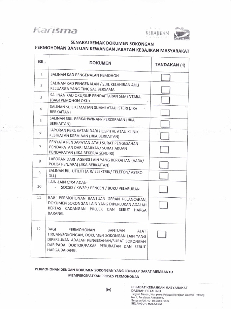 Borang Permohonan Bantuan Kewangan Jabatan Kebajikan Masyarakat